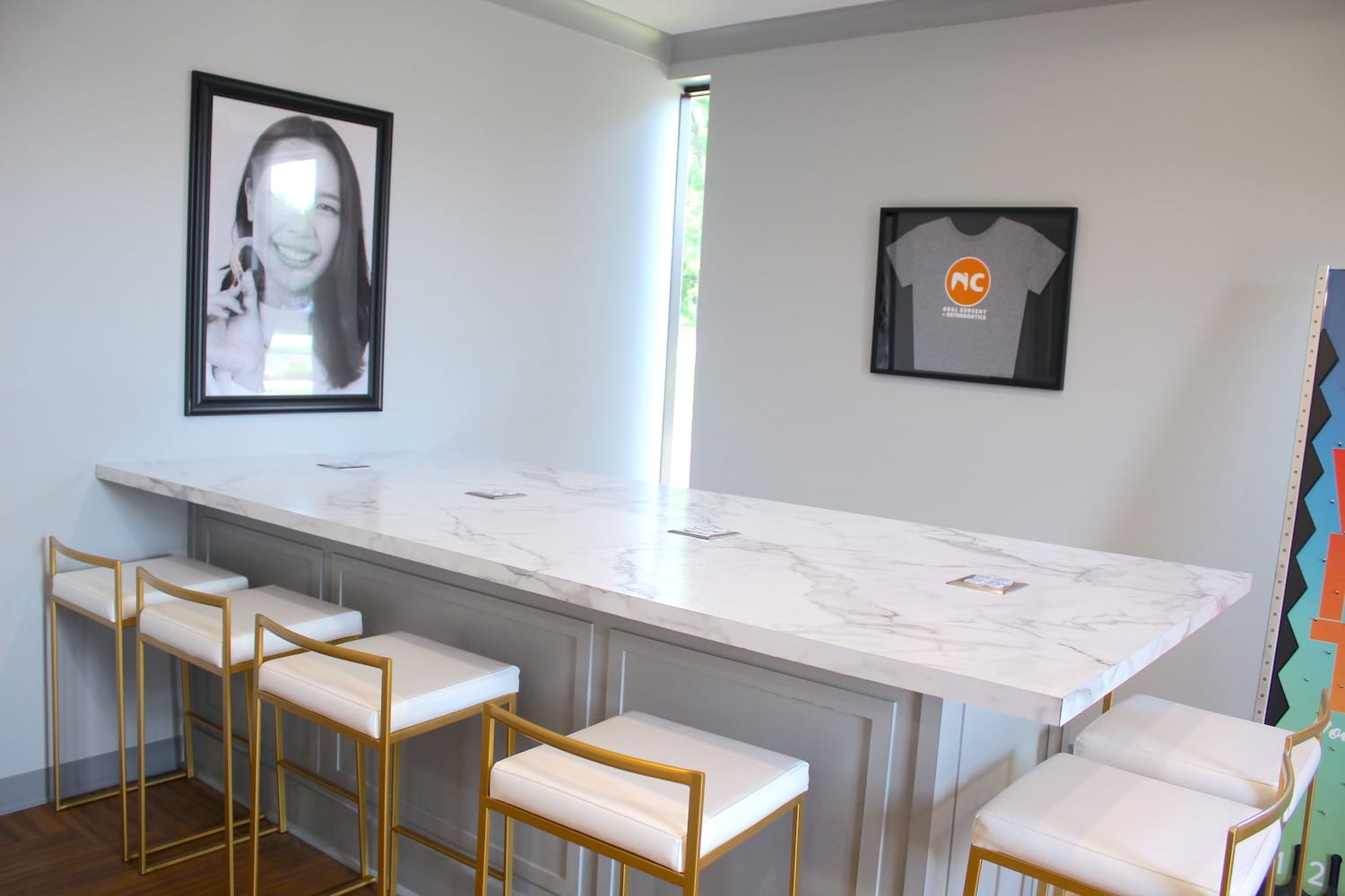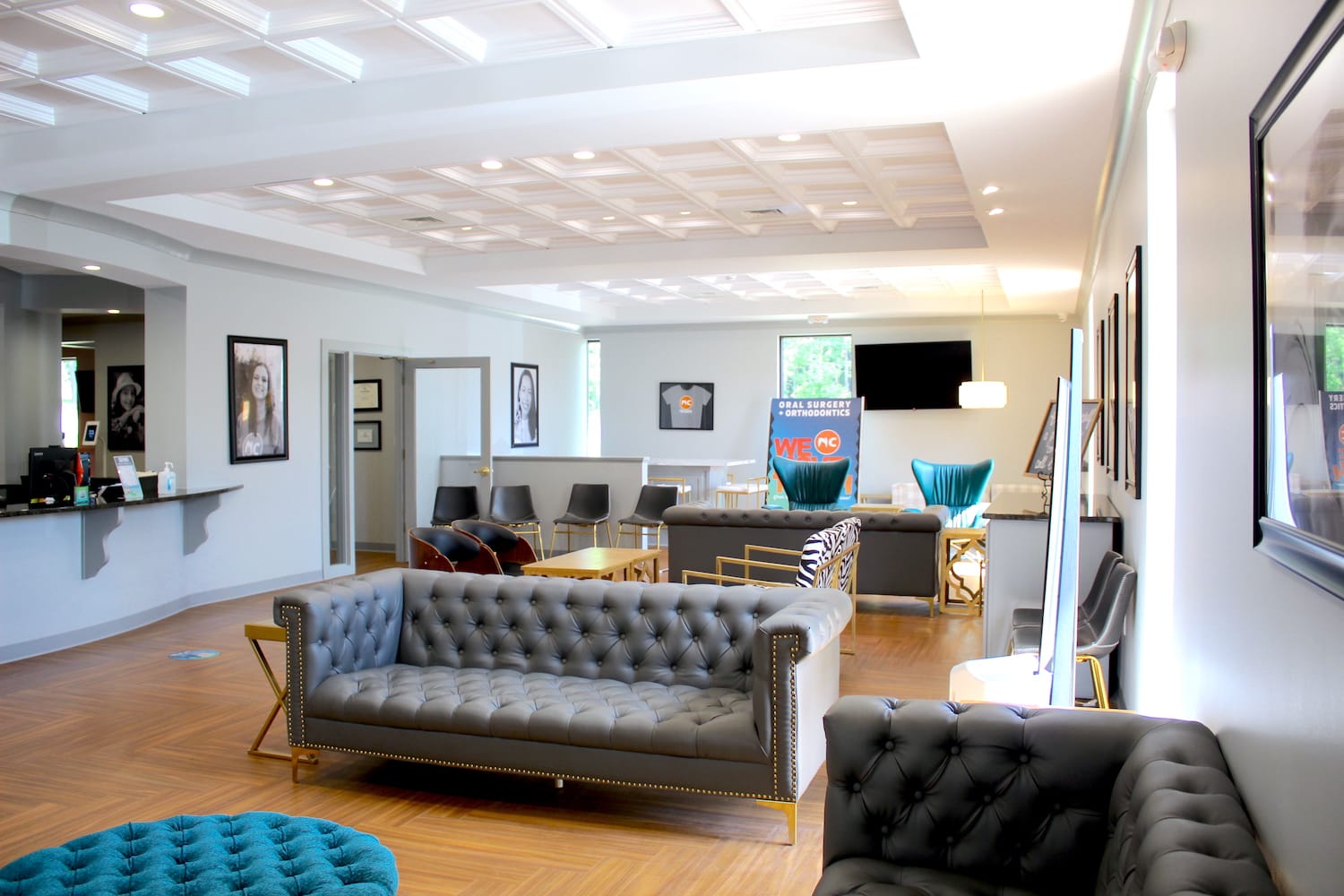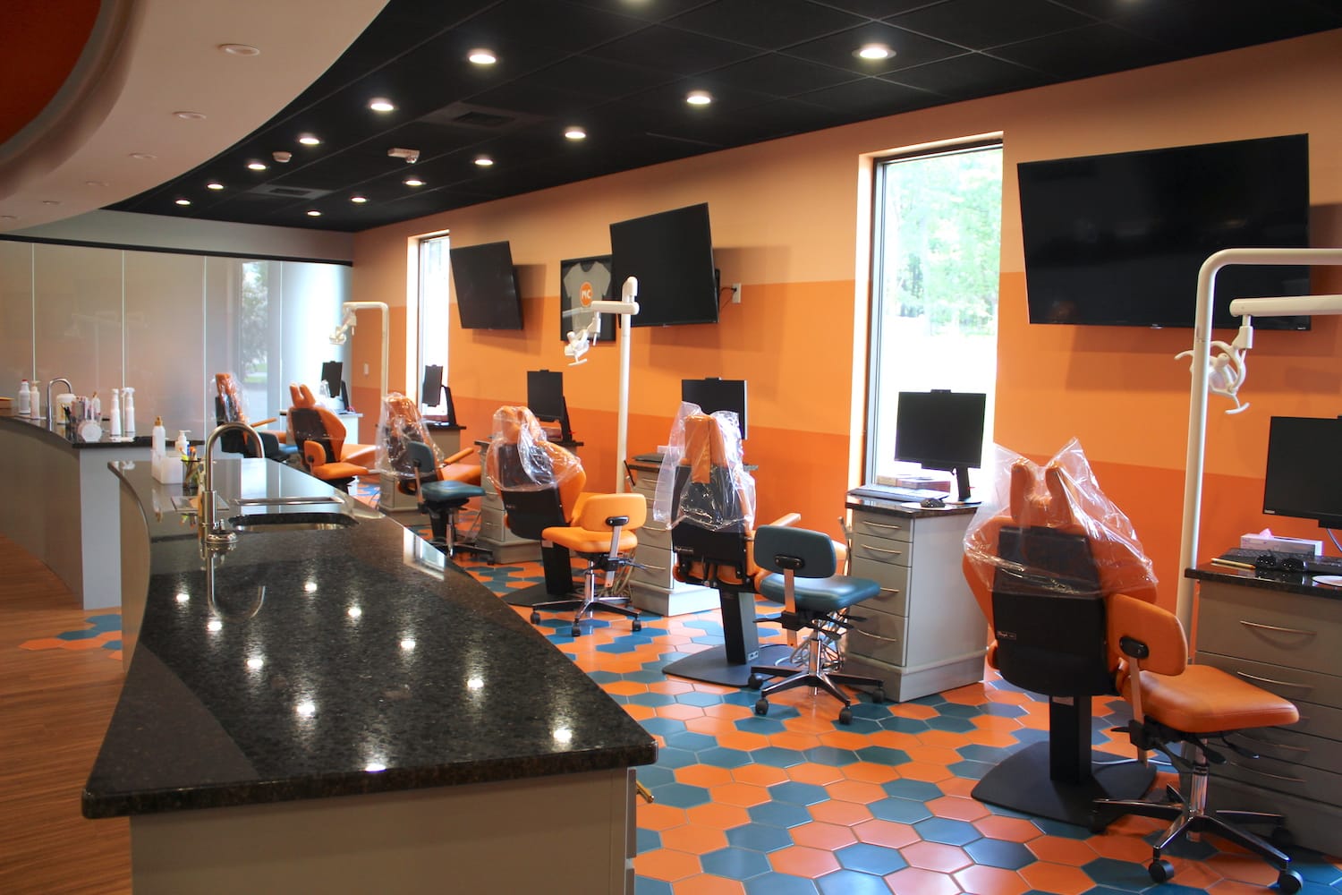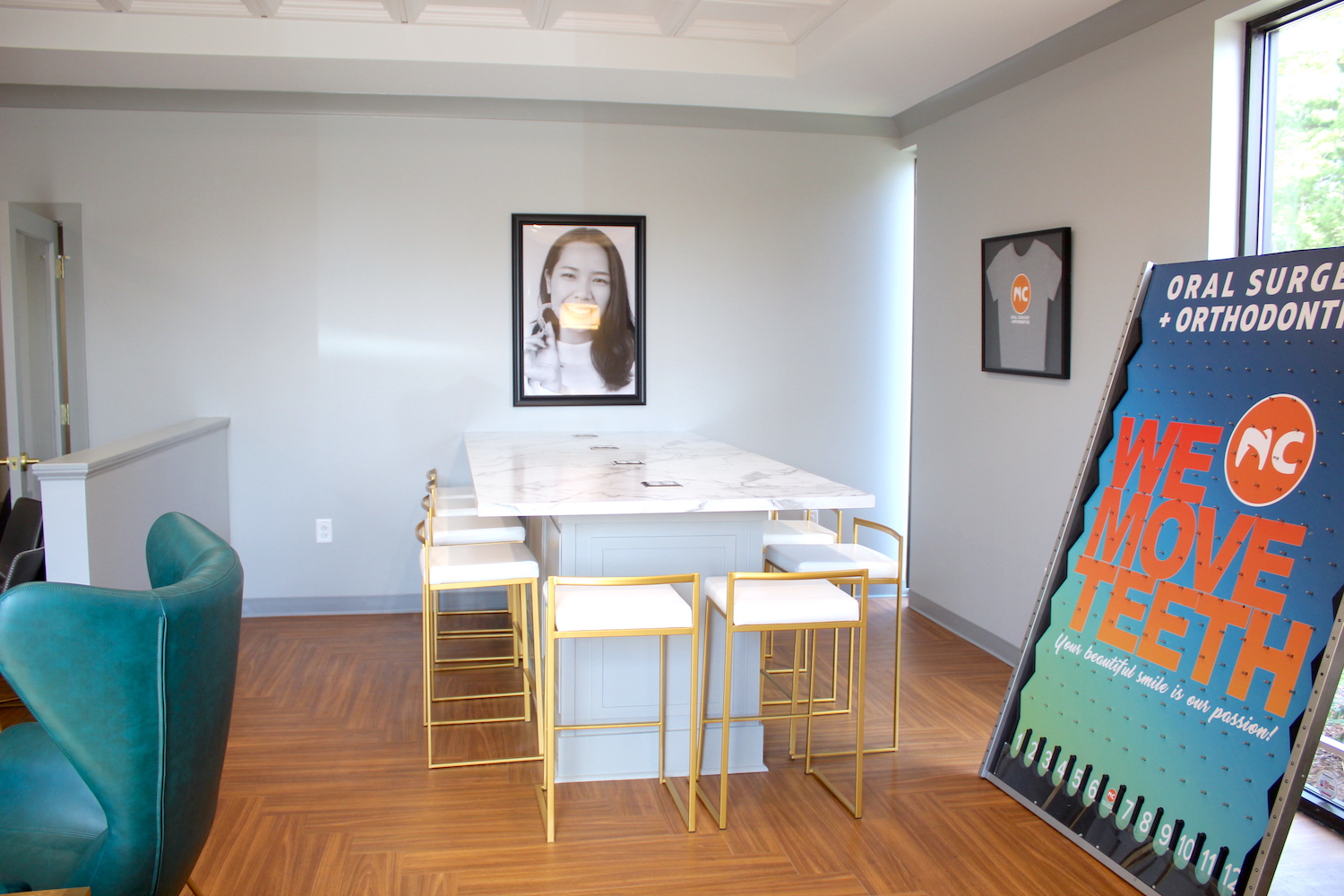 Our Durham location is now offering a beautifully appointed & spacious ortho bay with TVs at every chair for your orthodontics appointment. There is also a waiting area with charging stations inside the ortho bay for any extra guests & a rinsing station. While you wait to be called back there is also a fun photo booth with props to document each of your visits!